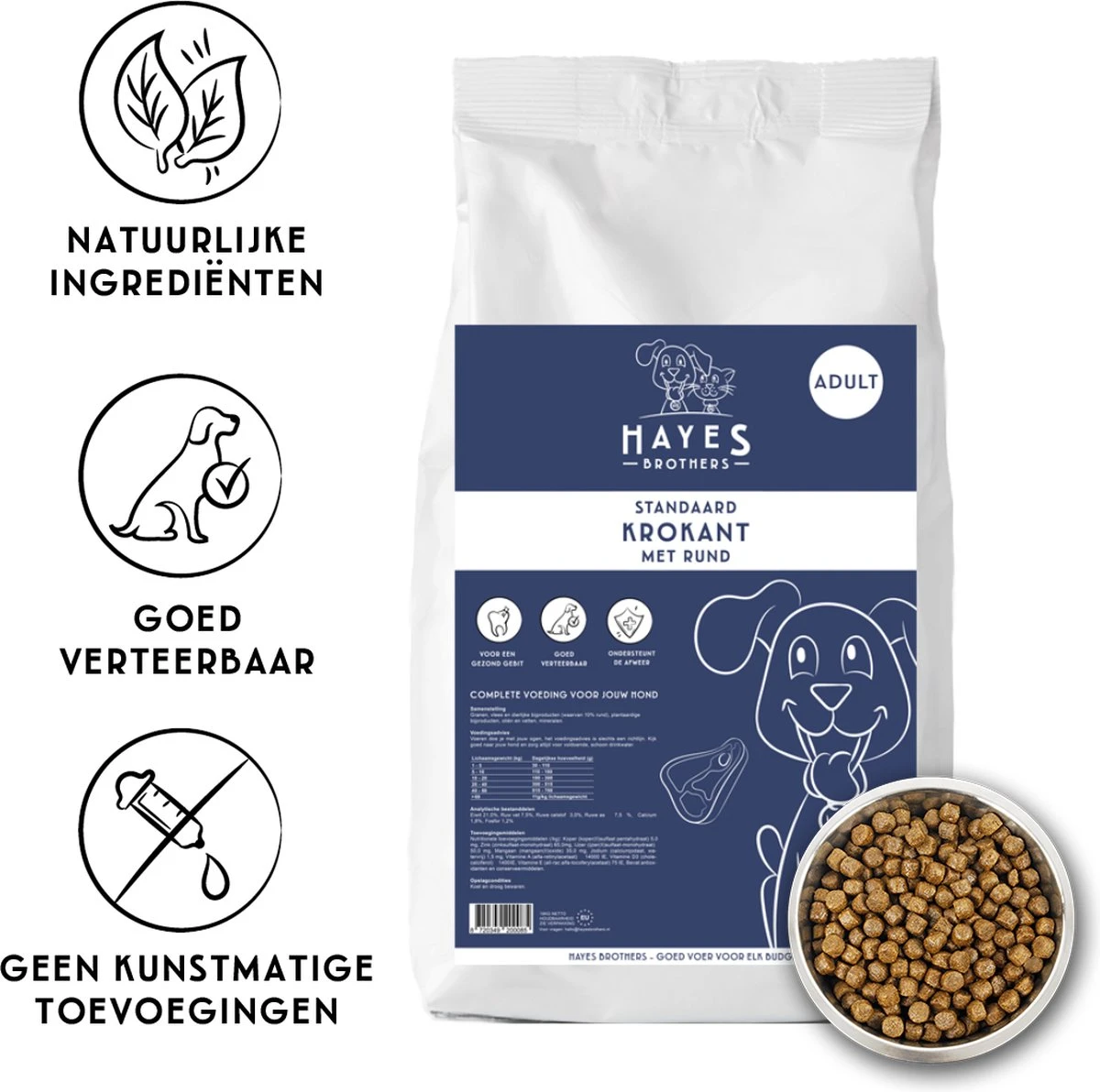 Hayes Brothers Standaard Krokant is een geëxtrudeerde brok met rund voor elke volwassen hond voor een budget prijs.