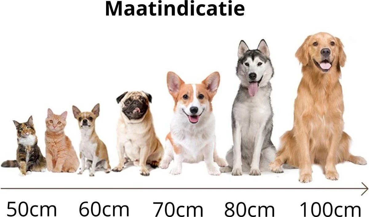 70 cm = voor honden tot 40 cm in lengte