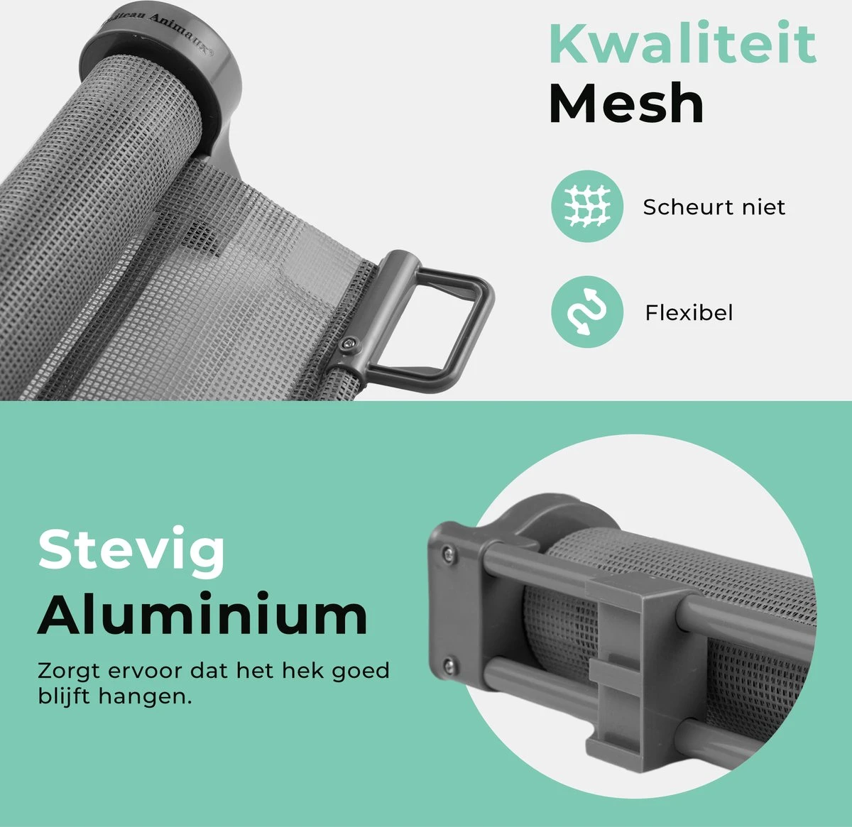 Ben je op zoek naar een stijlvol en effectief hondenhek? Dan is dit hondenhek van Chateau Animaux® écht iets voor jou! Je schermt de gewenste ruimte gemakkelijk af. Heb je het hek even niet nodig? Dan rol je hem gemakkelijk weer in!