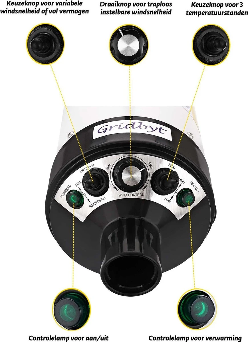 - Luchttemperatuur instelbaar in stappen van 30℃ tot 70℃.