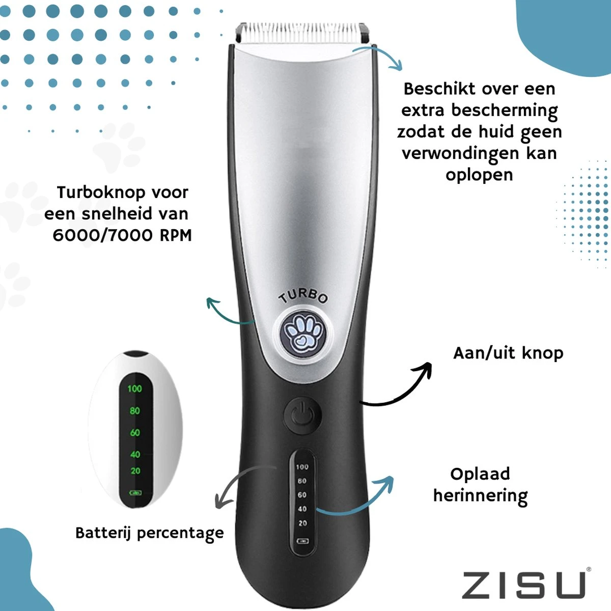Hondentondeuse – Hondentrimmer – Dieren Tondeuse – Draadloos – 4 Opzetkammen – INCLUSIEF SNACKJE – Zwart