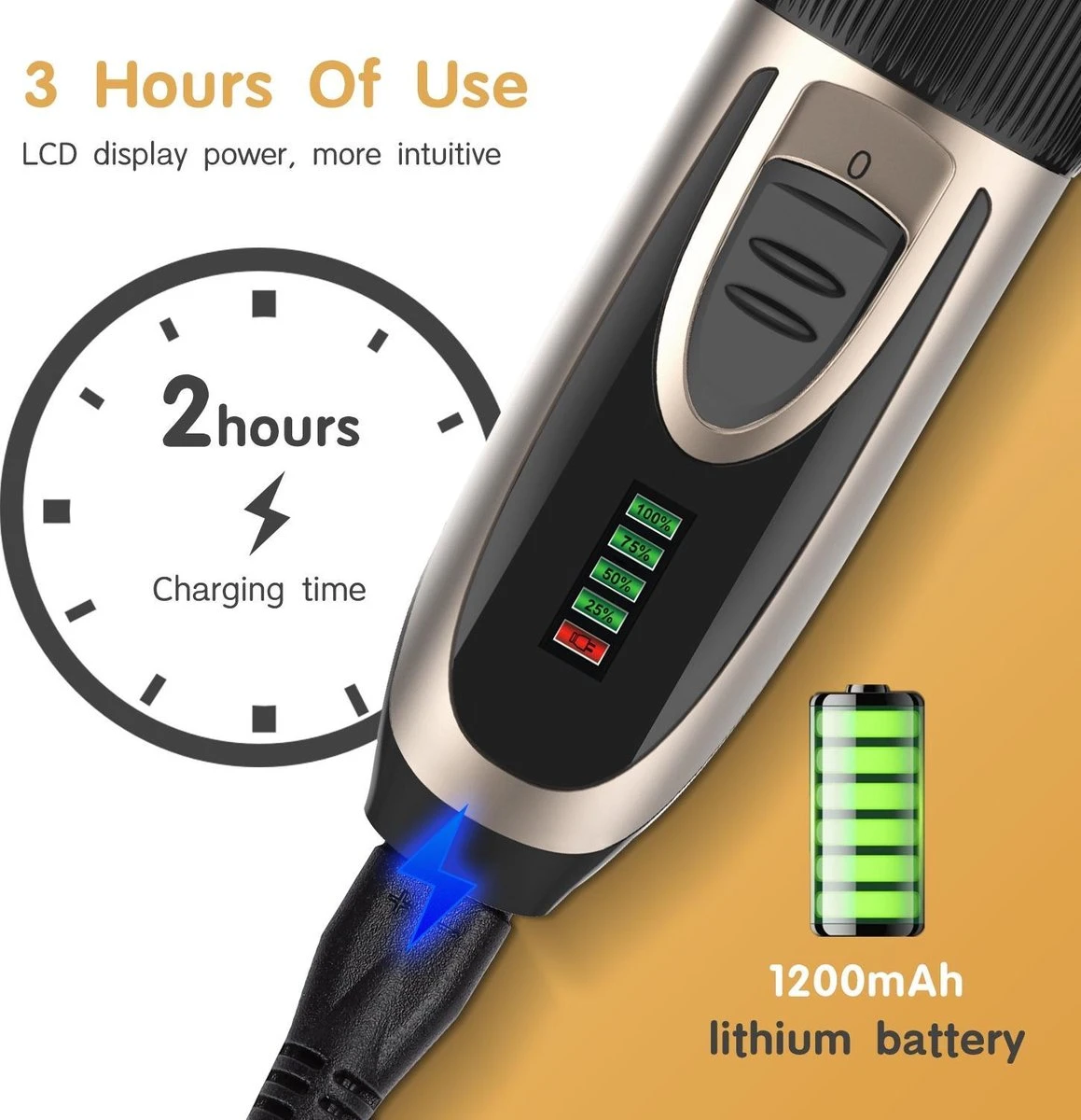 - 1200 mAh lithiumbatterij, lange levensduur van de batterij