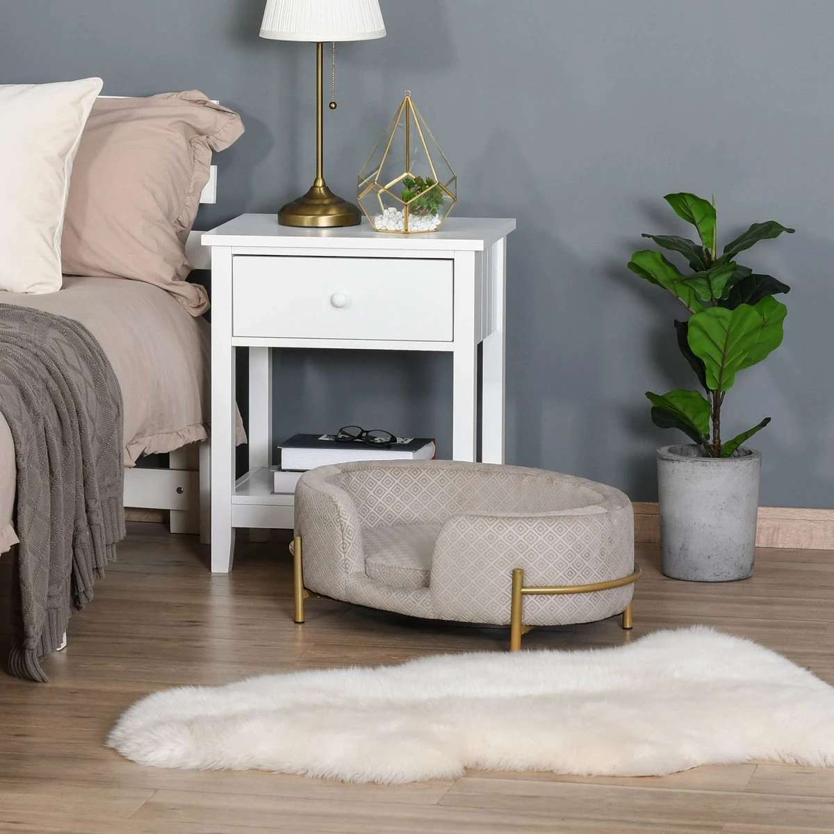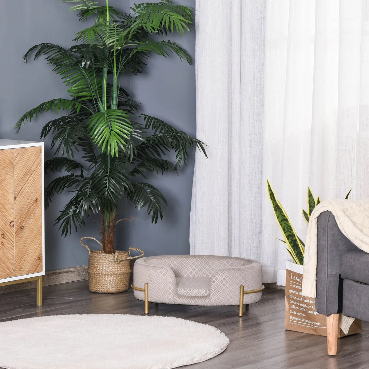 PawHut Huisdierenbank Hondenbank Kattenbank Zacht Rugleuning Metalen Poten Grijs D04-166