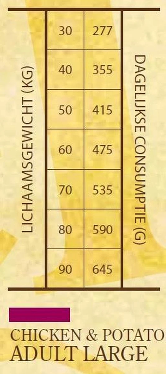 | Smaak dierenvoeding | Aardappel / Kip |