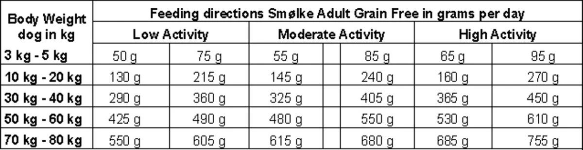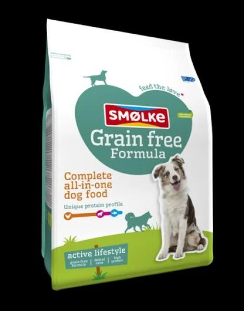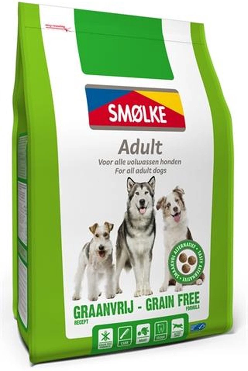 Dit complete, premium voer van Smølke is geschikt voor volwassen honden van alle rassen. Doordat het voer graanvrij is, is het tevens geschikt voor honden met een granen- en glutenallergie. De hoogwaardige grondstoffen zorgen voor een gezond en verteerbaar voer, waarbij de voedingsstoffen zeer goed worden opgenomen. Door het hoge vlees- en eiwitgehalte is dit voer zeer geschikt voor actieve honden. Daarnaast wordt tandsteenvorming tegen gegaan door mineralen en zorgen Omega-3 en -6 vetzuren dat huid en vacht in uitstekende conditie blijven. Dit product is vrij van suikers en kunstmatige geur-, kleur- en smaakstoffen.