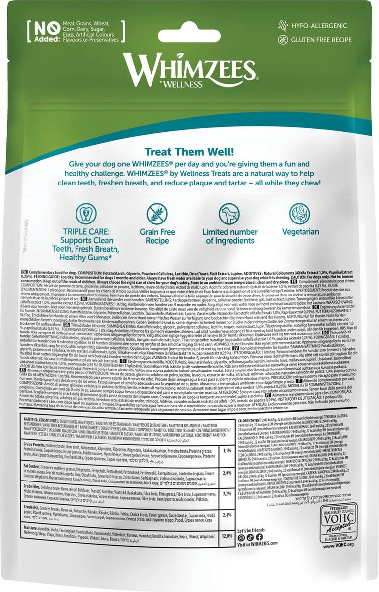 Whimzees kauwsnacks zijn niet alleen heel erg lekker, maar ook heel erg goed voor de gezondheid van je hond(en). De snacks zijn zeer licht verteerbaar, glutenvrij en gemaakt van 100% natuurlijke ingrediënten. Zo kunnen zelfs de meest gevoelige honden genieten van een heerlijk tussendoortje op zijn tijd. Daarnaast zorgen de ingrediënten en de structuur van deze snacks voor een schoon en gezond gebit, dat is fijn voor hond en baas!
